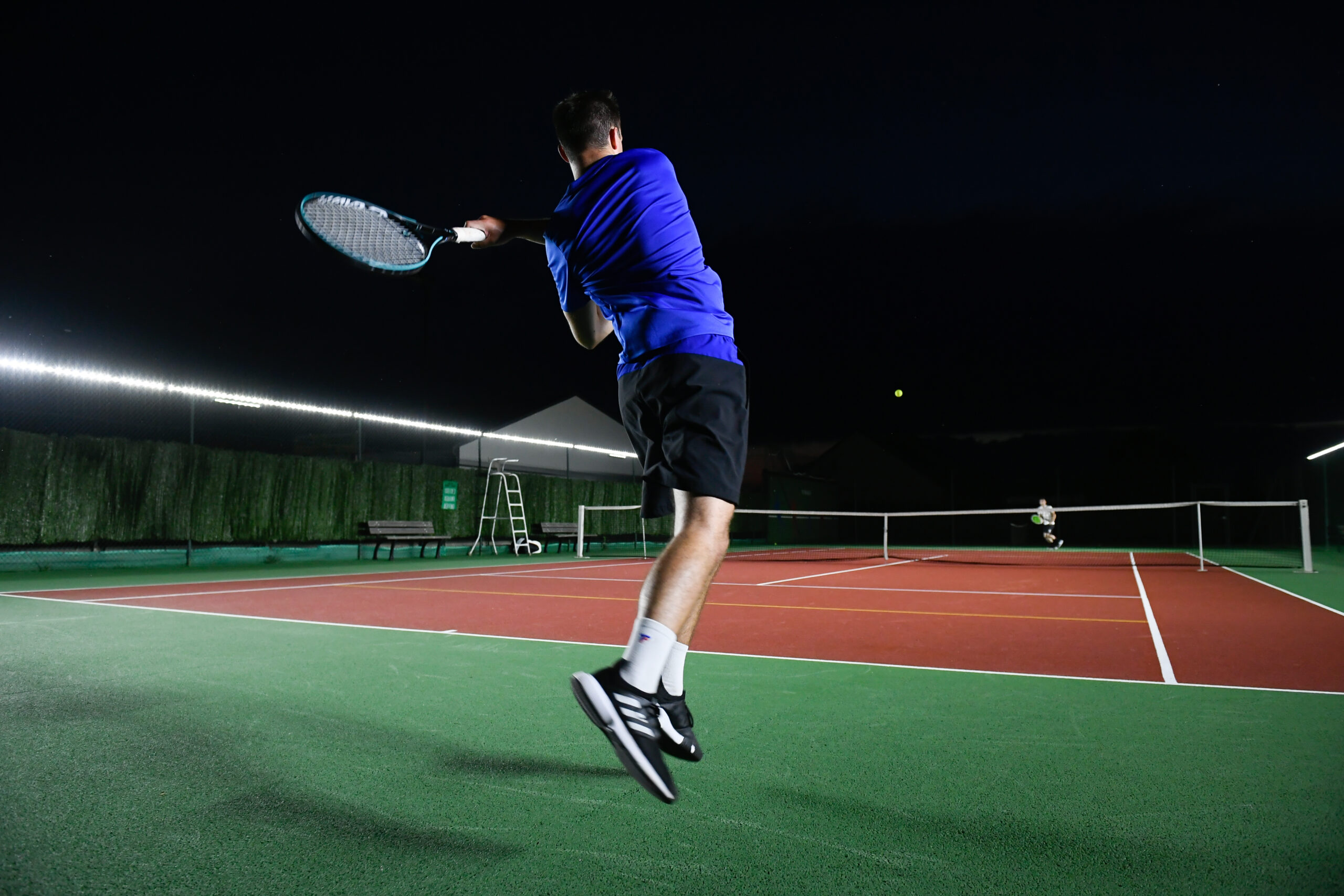 A patented linear lighting system that makes tennis courts more sustainable and eliminates the need for traditional light poles.